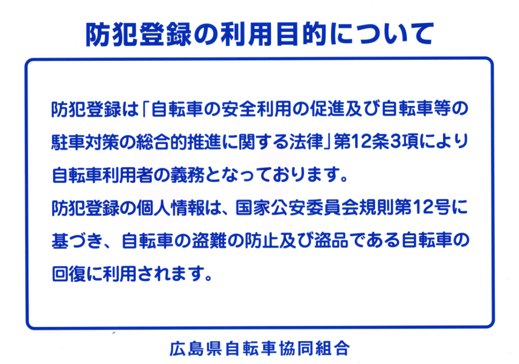 防犯登録(防犯登録は法律により義務化されています)